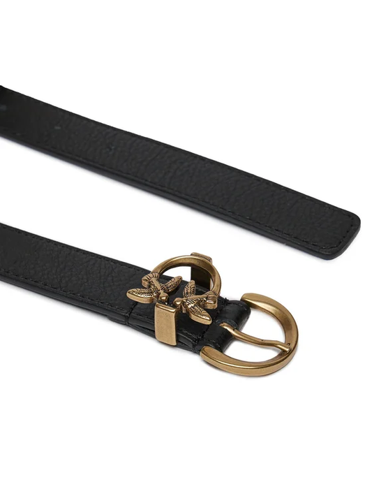 • Pinko cintura Tamboril in pelle martellata h2,5 nero
