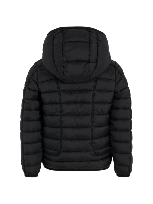 Scopri il giubbino imbottito trapuntato con cappuccio nero di Diesel, una scelta eccellente per il guardaroba del tuo bambino. Questo giubbino presenta una trapuntatura orizzontale che unisce stile e funzionalità, offrendo al contempo un comfort ottimale durante le giornate più fresche.