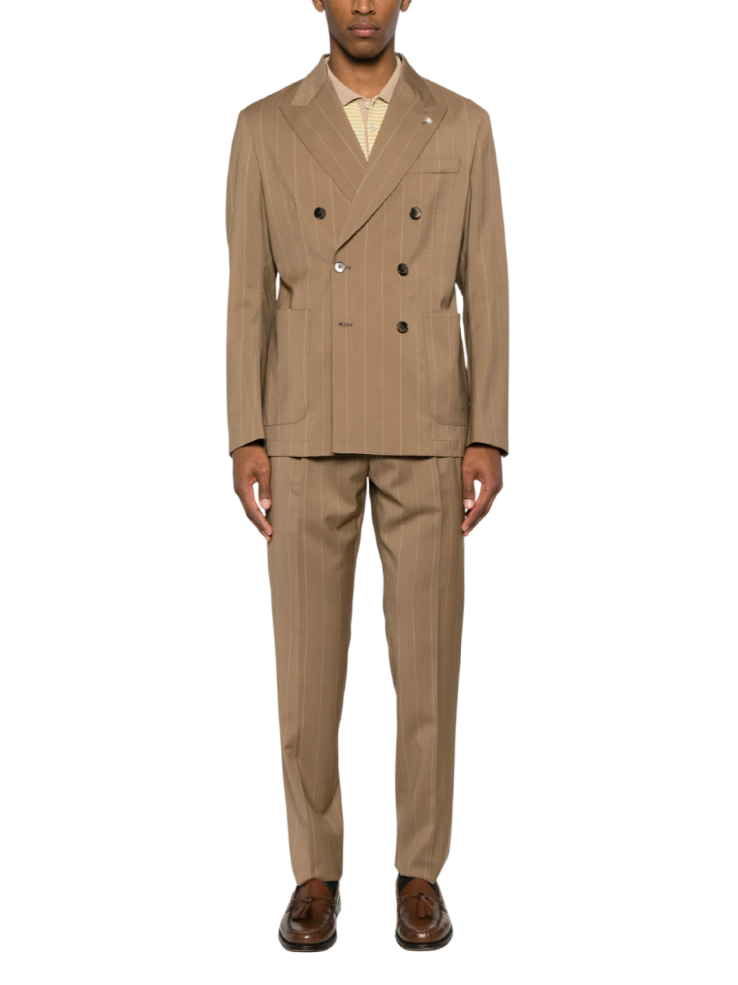 Manuel Ritz abito uomo doppiopetto in fantasia gessata marrone cammello