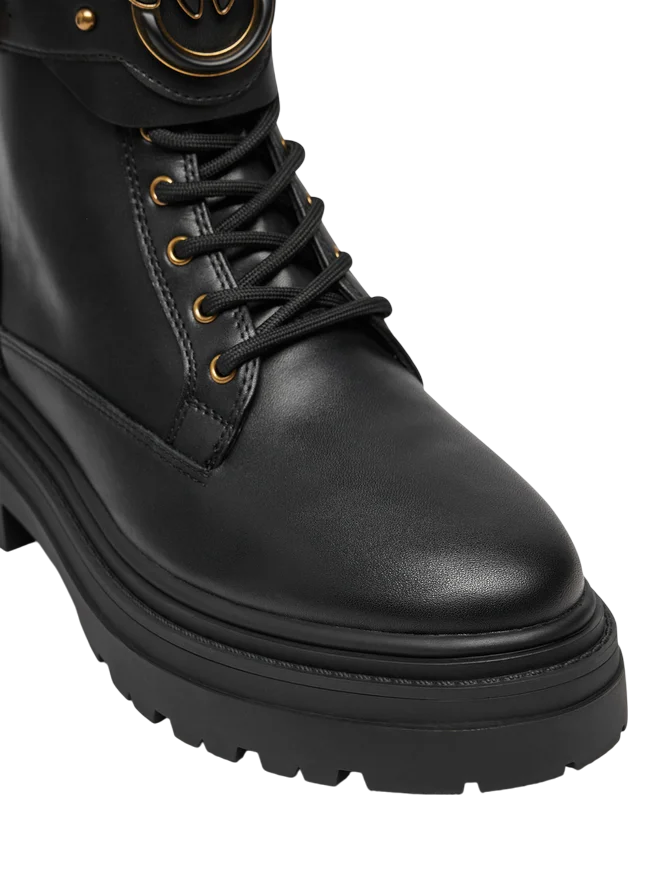 Pinko stivali anfibi Mia con placca Love Birds in pelle nero