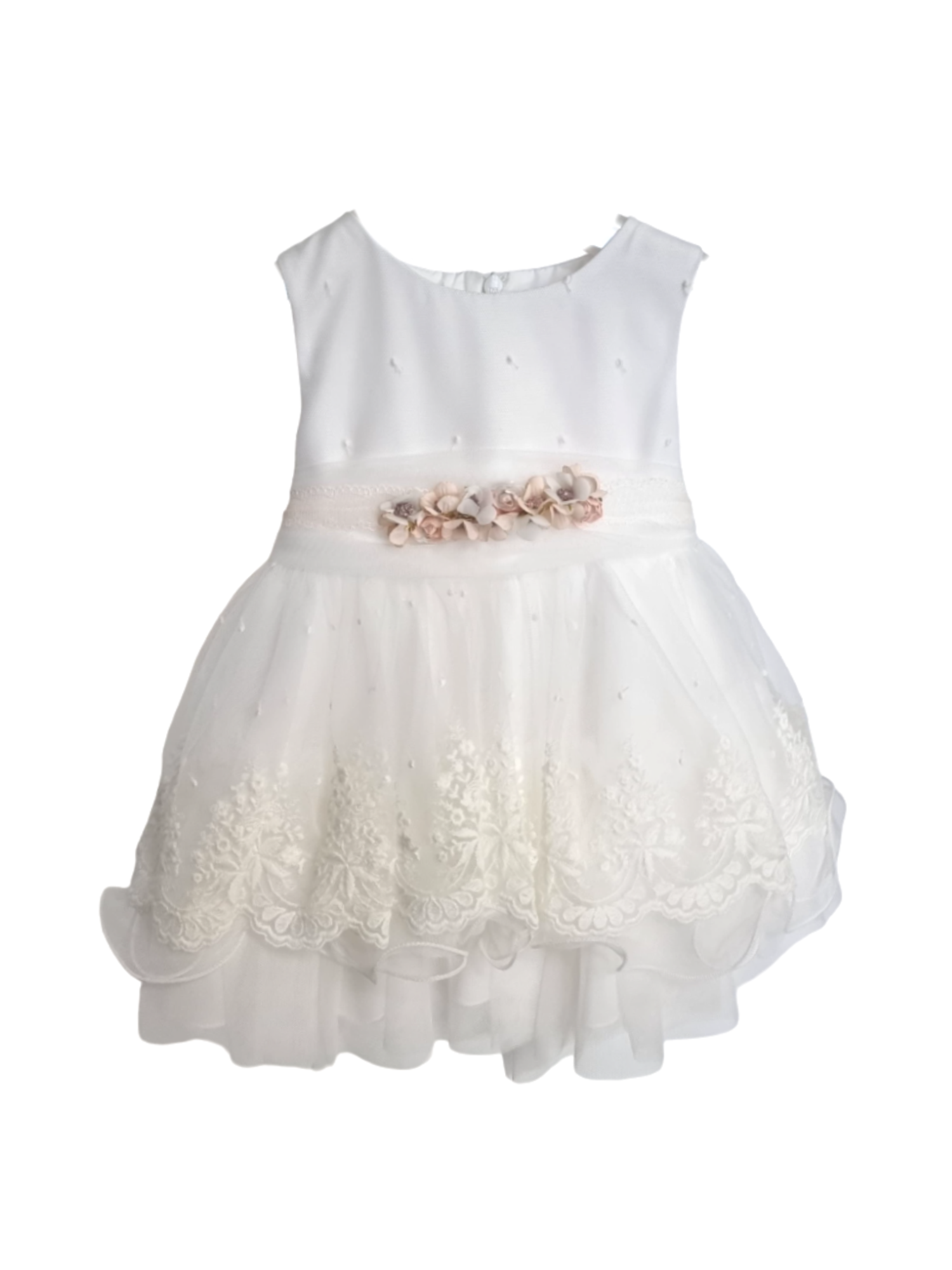 Mimilù abito da cerimonia neonata smanicato in tulle ricamato bianco