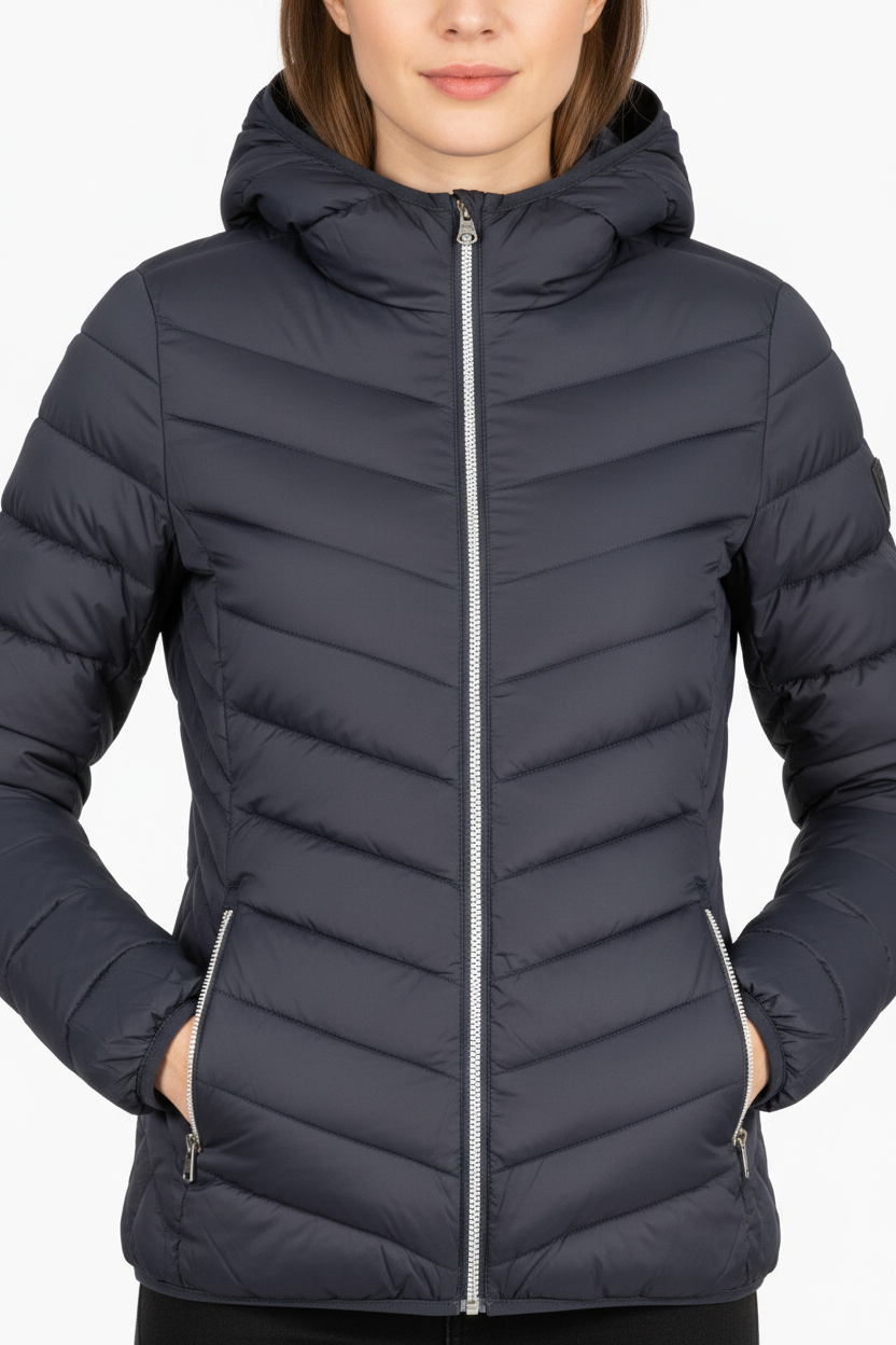 - Un cappuccio, che non solo offre protezione dalle intemperie ma aggiunge anche un tocco di modernità al look.