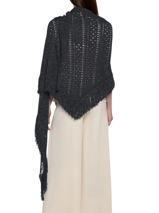 Simona Corsellini scialle traforato lurex con frange nero