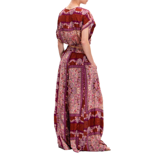 Vicolo pantaloni palazzo in tessuto fluido color prugna