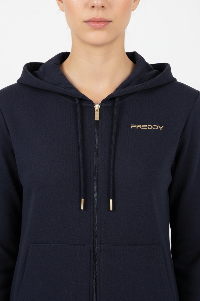Questa felpa è perfetta per un look casual ma curato, ideale per appuntamenti informali o per il tempo libero. La sua vestibilità comoda la rende un must-have del tuo guardaroba. Scegli Freddy Felpe e scopri come un capo possa combinare funzionalità e stile.